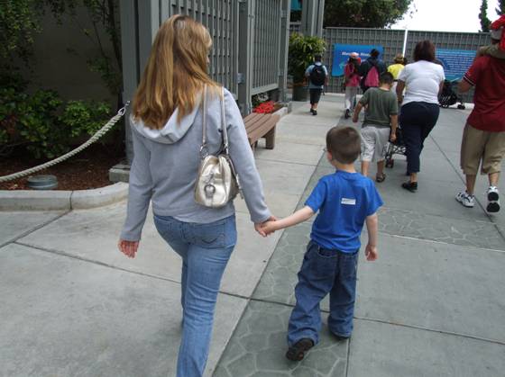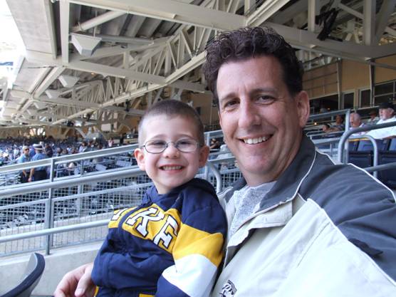 ←Hurry up, Daddy. We’re late for the game.