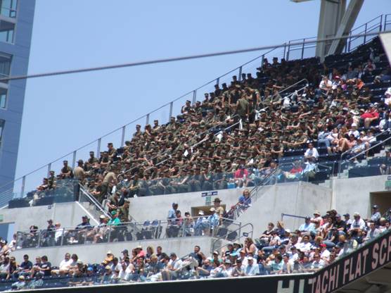 Sunday is normally Armed Forces day – a contingent of Army/Navy/Marines is always on hand, and fans salute midway through the third inning.